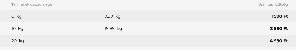 Egységes szállítási költség tömegtől függetlenül 990 Ft.