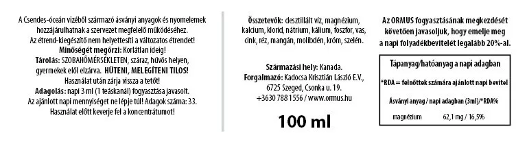 A Vancouver Island Ormus tengervízből kinyert étrend-kiegészítő koncentrátum alapja 100%-os tiszta óceáni ásványok, amelyeket a kanadai Vancouver-sziget nyugati partjáról nyerünk. Termékünk ásványi anyagokat, nyomelemeket és makro tápanyagokat tartalmaz, amelyek hozzájárulhatnak a szervezetünk megfelelő működéséhez. Az étrend-kiegészítő nem helyettesíti a változatos étrendet!