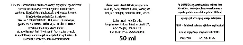 A Vancouver Island Ormus tengervízből kinyert étrend-kiegészítő koncentrátum alapja 100%-os tiszta óceáni ásványok, amelyeket a kanadai Vancouver-sziget nyugati partjáról nyerünk. Termékünk ásványi anyagokat, nyomelemeket és makro tápanyagokat tartalmaz, amelyek hozzájárulhatnak a szervezetünk megfelelő működéséhez. Az étrend-kiegészítő nem helyettesíti a változatos étrendet!