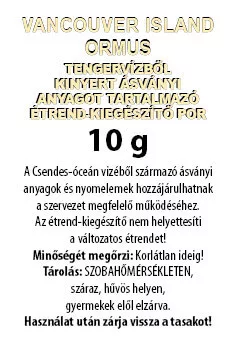 A Vancouver Island Ormus tengervízből kinyert étrend-kiegészítő por alapja 100%-os tiszta óceáni ásványok, amelyeket a kanadai Vancouver-sziget nyugati partjáról nyerünk. Termékünk ásványi anyagokat, nyomelemeket és makro tápanyagokat tartalmaz, amelyek hozzájárulhatnak a szervezetünk megfelelő működéséhez. Az étrend-kiegészítő nem helyettesíti a változatos étrendet!